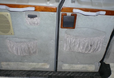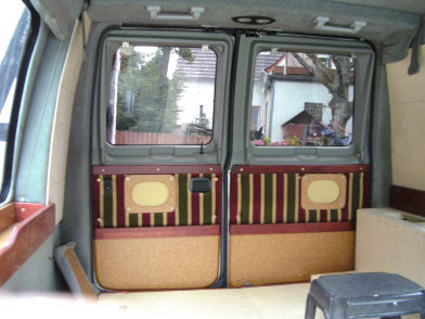 Etwas später kamen die unverzichtbaren Gardinen dazu. Durch die breiten Befestigungsleisten für die Gardinenstangen entsteht unter jedem Fenster ein praktisches Fach für Kleinzeug (Feuerzeuge, Kellnermesser, Kabelbinder, was man halt im Urlaub so braucht).