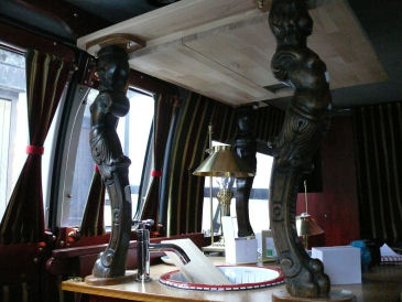 Einbau der Konsole für TV, Bordradio und Notebook.