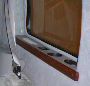 Die Fensterbänke vorher Kunstleder grau mit einigen Plastik-