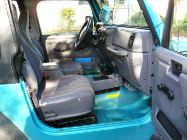 Ich hab den Teppich rausgerissen. Da der beim TJ nicht verklebt ist, ging das recht einfach und ohne Rückstände.