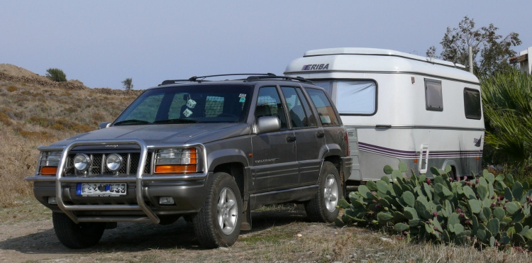 Zugfahrzeug: Jeep Grand Cherokee 5.9l V8 mit Prins Gasanlage. Als der gebaut wurde, gab’s noch keine SUVs.
