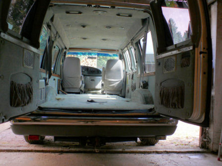 Last but not least: Der Van war leer bis auf die Vordersitze. Der Innenraum erstaunlich vergammelt, Karosse und Unterboden allerdings ebenso erstaunlich rostfrei!